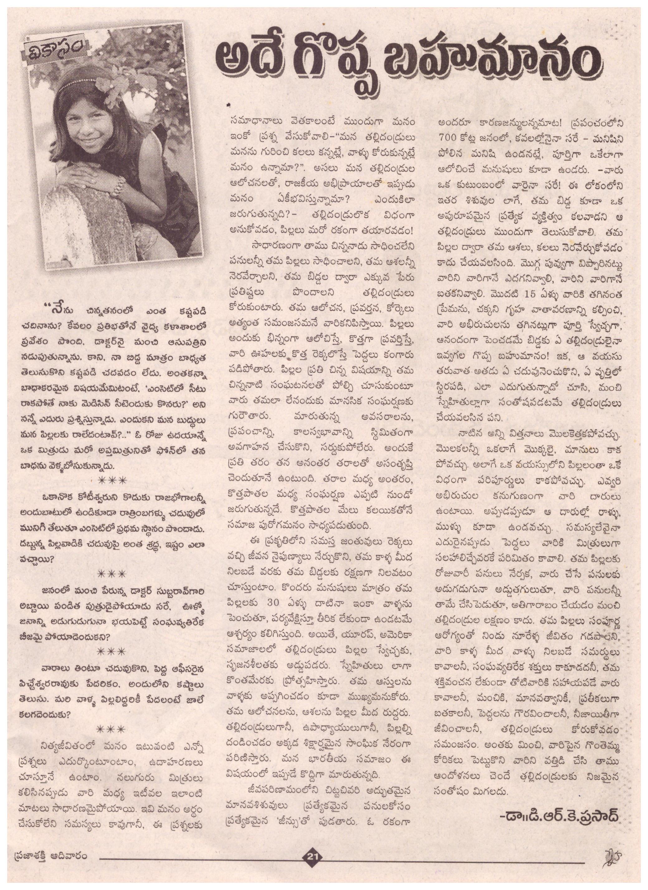 (ఈ వ్యాసం ‘అదే గొప్ప బహుమానం’ పేరుతో ప్రజాశక్తి ఆదివారం పుస్తకం ‘స్నేహ’లో 17-10-2010 న ప్రచురింపబడినది.)