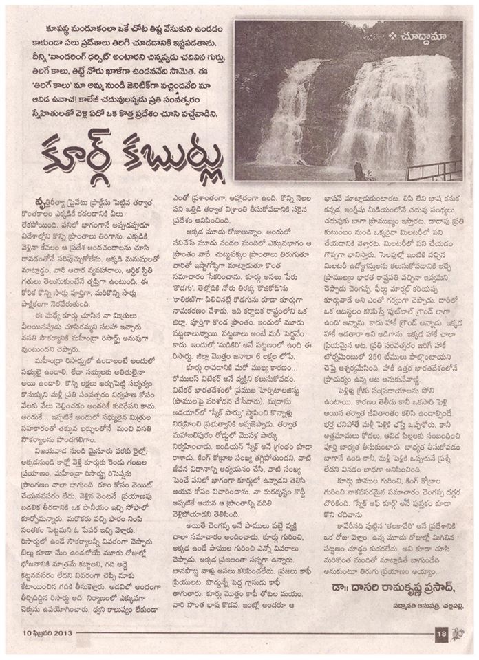 కూర్గు కబుర్లు March 2, 2018.... (13-Jul-2020)