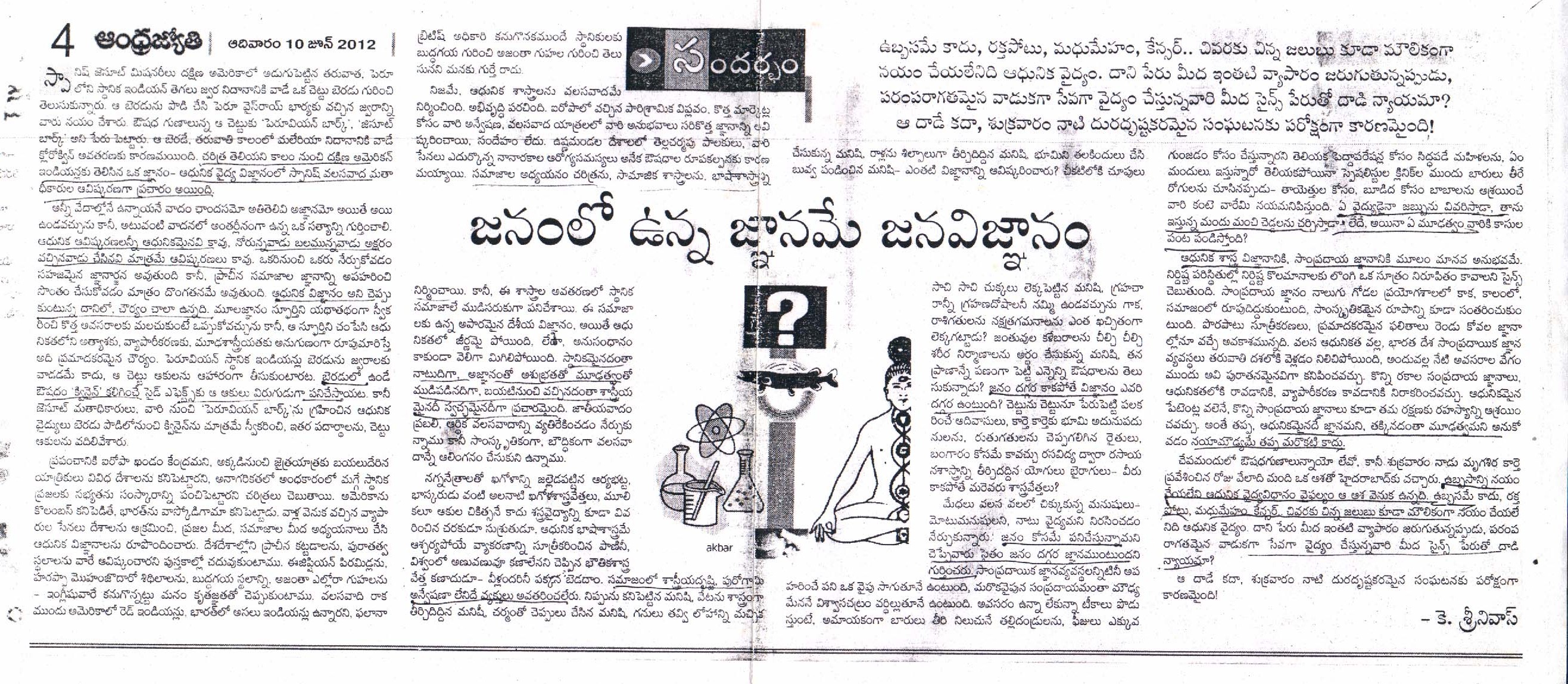 కానీ మీ వ్యాసం – జనంలోని అజ్ఞానానికి ప్రోత్సాహం కాదా?