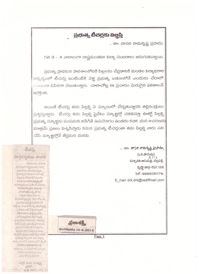 ప్రభుత్వ టీచర్లకు విజ్ఞప్తి.... (14-Jul-2020)