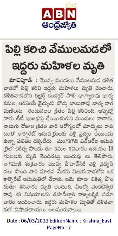 నేటి ఈ వార్త నన్ను కలిచివేసింది. వైద్యశాస్త్రం ఎంతో అభివృద్ధి చెందిన ఈ కాలంలో పిల్లులు, కుక్కలు కరిచిన మనుషులు చనిపోవడం ఎంత బాధాకరమో చెప్పలేను.