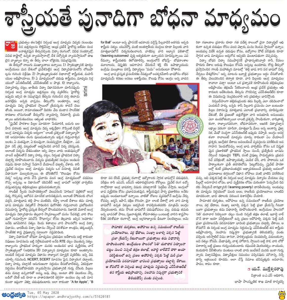 శాస్త్రీయతే పునాదిగా బోధనా మాధ్యమం.... (05-May-2020)