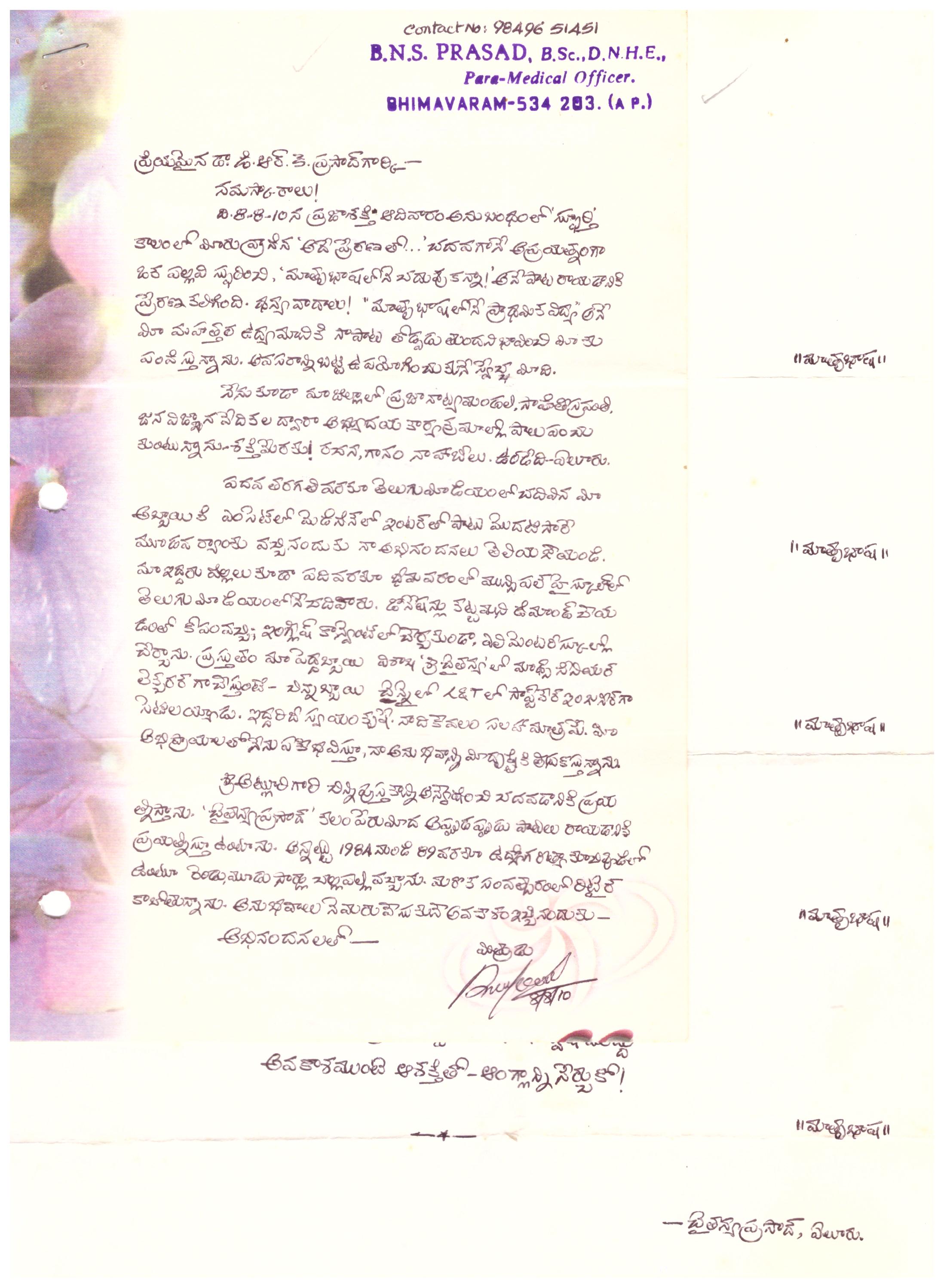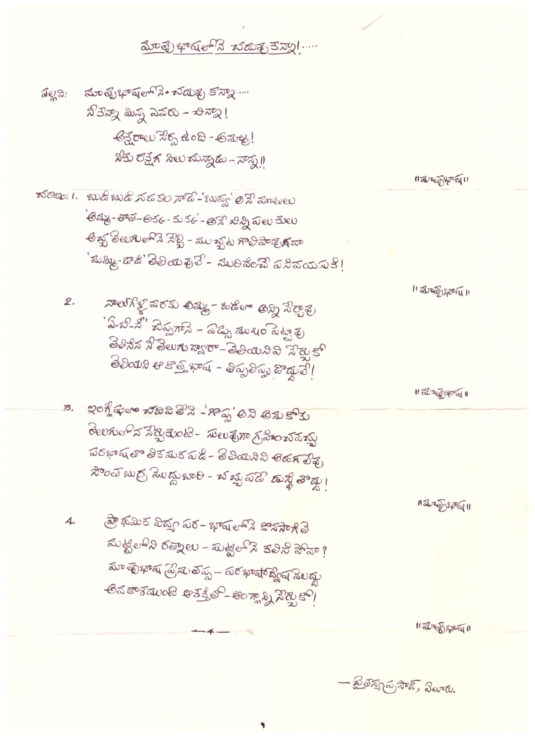 దూరదృష్టి లేక, మీడియం రూపంలో అత్యంత మధురమైన బాల్యాన్ని, సృజనాత్మకతను హరించి వేయడమే జీవితంలో నాకున్న అతి ముఖ్యమైన బాధ. ఉద్యమ స్ఫూర్తితో జనంలో పనిచేయడానికి ఆ బాధే కారణం. ఐతే దీనికి ప్రధాన ప్రేరణ మాత్రం అట్లూరి పురుషోత్తం గారి “మాతృభాషలో ప్రాథమిక విద్య” అనే గ్రంథమే!