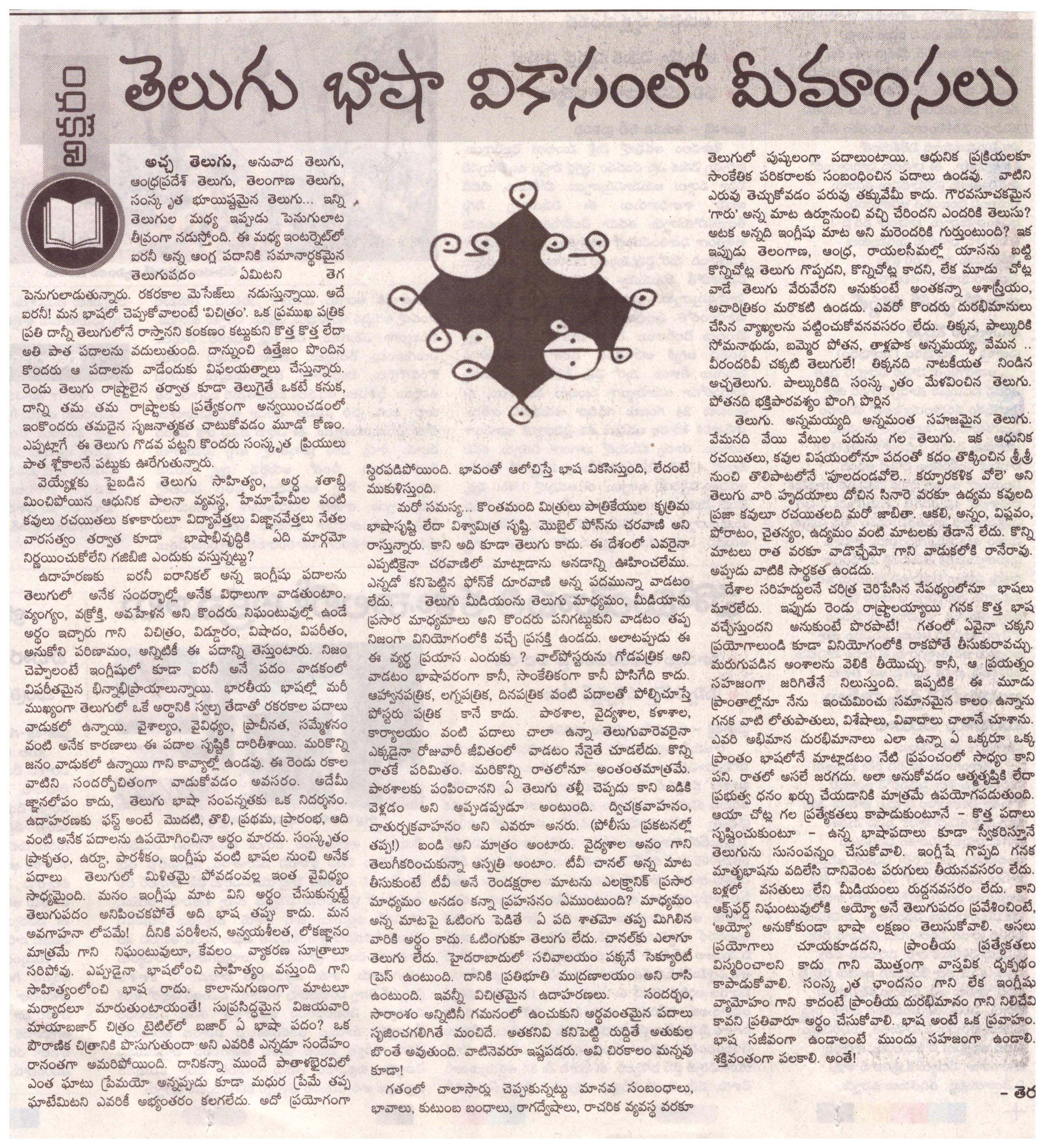 తెలుగు భాషా వికాసంలో మీమాంసలు.... (03-July-2020)