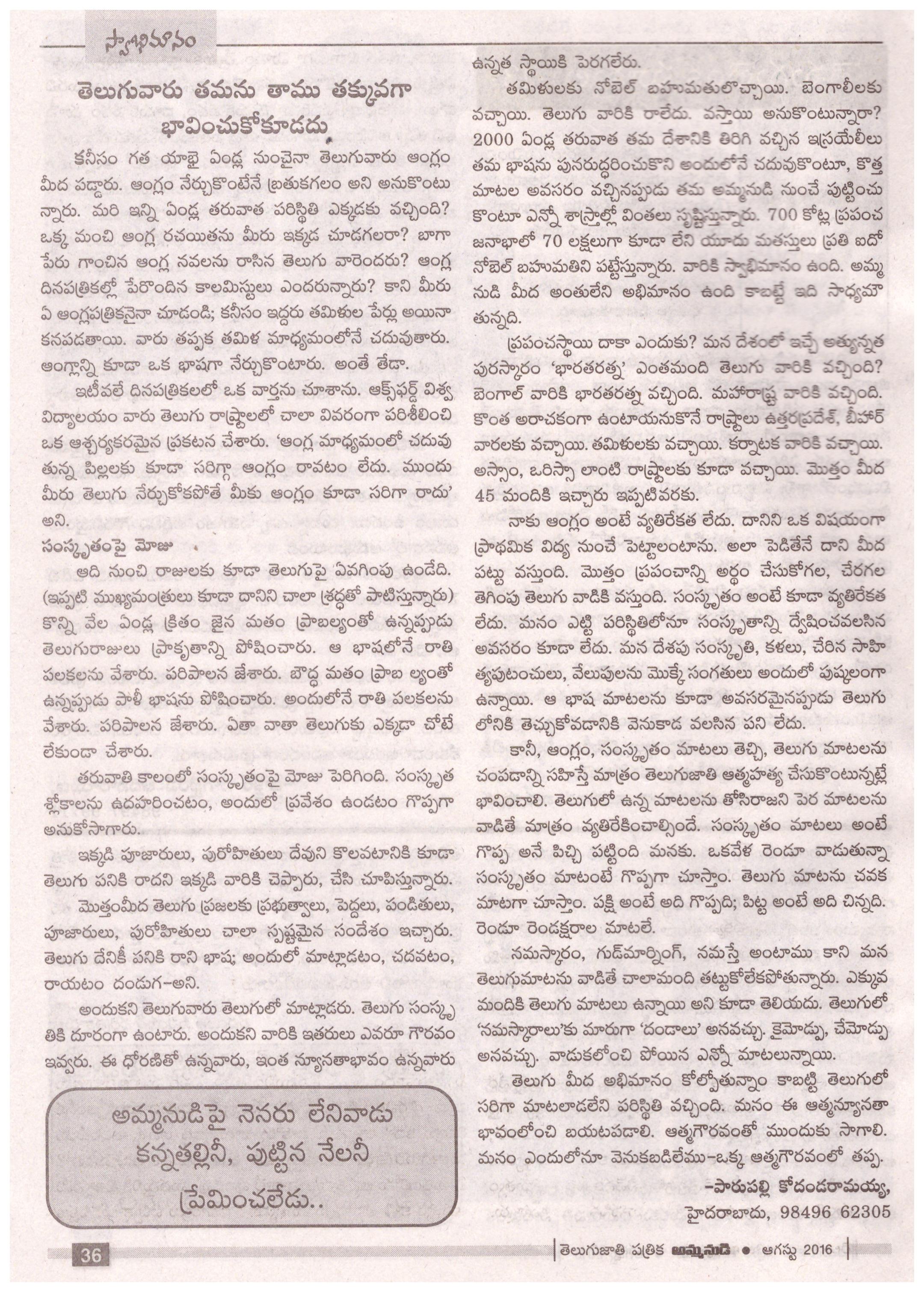 తెలుగువారు తమను తాము తక్కువగా భావించుకోకూడదు.... (03-July-2020)