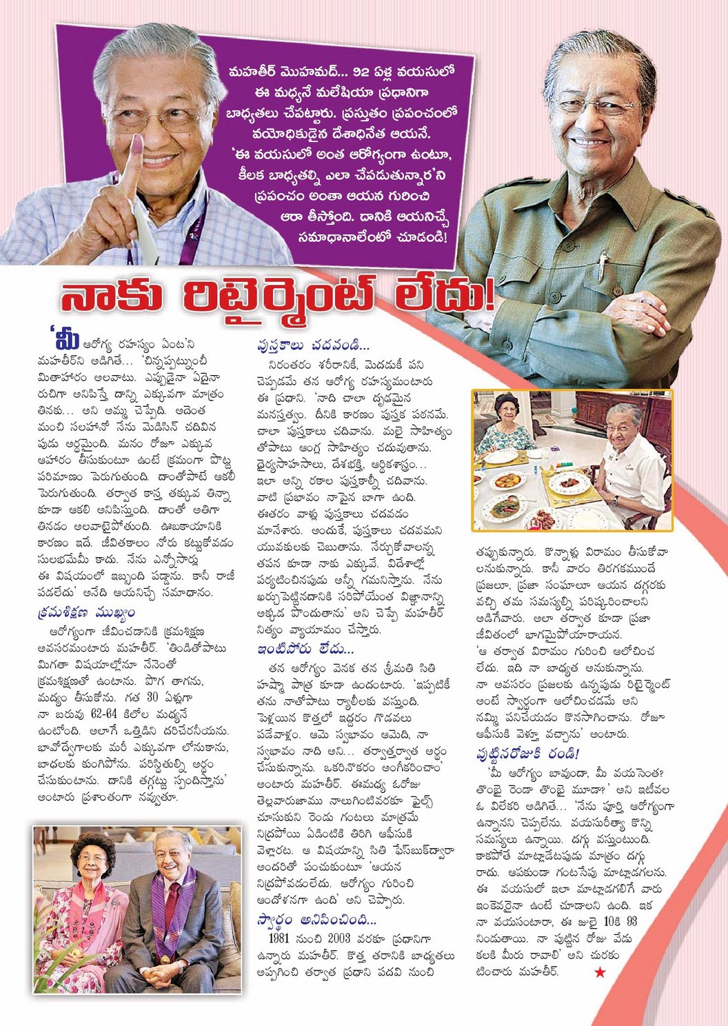 నాకు రిటైర్ మెంట్ లేదు – మహతీర్ మొహమద్ – మలేషియా ప్రధాని.... (09-July-2020)
